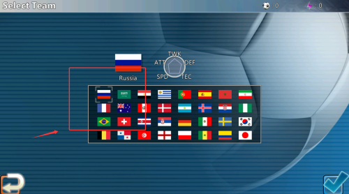 3、国家队选择页面包含32支真实球队数据,每支队伍拥有独特的战术风格与球员阵容。