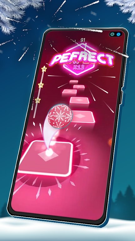 2、随着音乐节奏变化,平台间距与出现速度提升,需集中注意力精准跳跃,避开掉落风险,收集沿途的节奏能量。