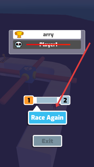 3、完成关卡1竞速后,若想再体验,点击Race-Again按钮,重新开启一轮刺激的赛道竞速对决。