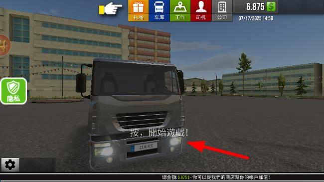 1、进入游戏后解锁初始卡车,在训练模式中熟悉方向盘、油门、刹车等操作,学习倒车入库、货物装卸的基础技巧,了解不同卡车的驾驶特性。