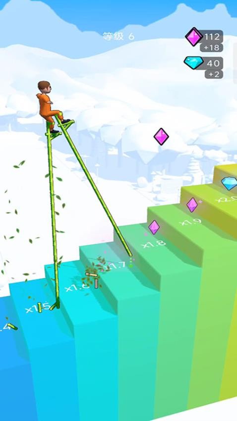 1、高难度平衡挑战,带来独特操作体验。玩家需精准控制角色重心,在超高跷道具上保持稳定,任何细微失误都可能导致失败,紧张感与成就感并存。