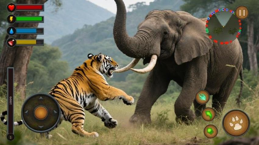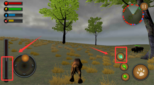 3、动态对手AI设计,狮子、大象等动物会依据玩家行为调整战术。例如受伤的猎物可能呼叫同伴围攻,需实时观察环境才能把握最佳进攻时机。