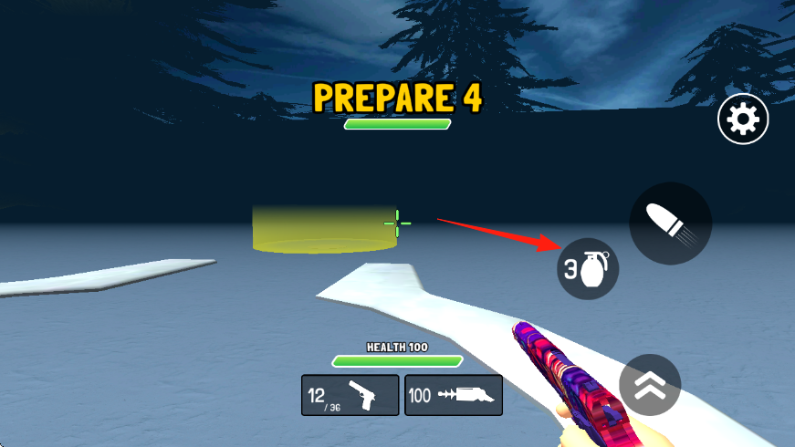 1、开局阶段,查看右侧武器,按箭头,确认手雷数量3个,熟悉操作,为战斗蓄力。