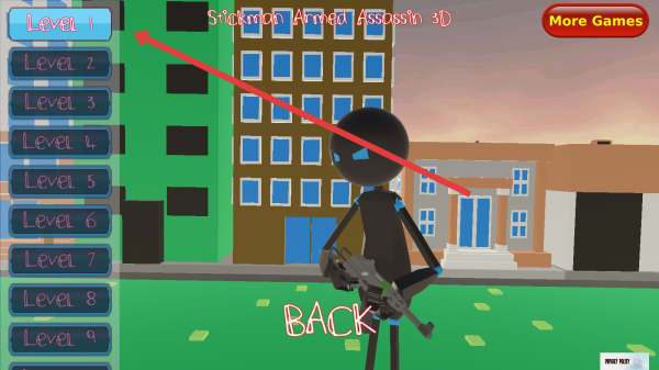 2、进入到关卡选择界面,选择Level-1关卡,开启游戏的第一关挑战,准备执行火柴人刺客任务。