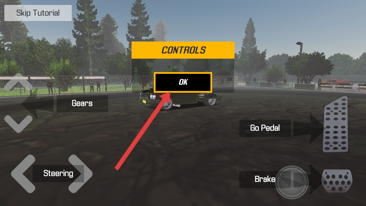 1、在控制说明的界面,点击中间黑底黄边的OK按钮,确认转向、油门、刹车的操作设定,开启漂移挑战。
