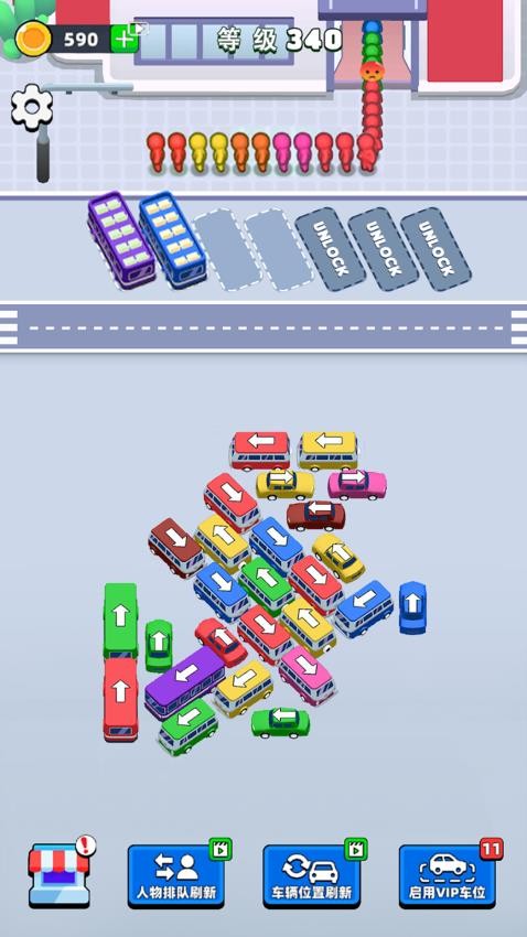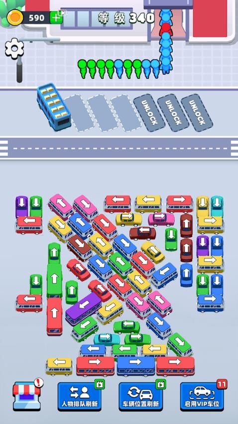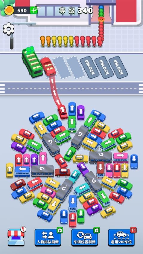 1、开局先观察关卡布局与挪车目标,了解车辆分布与移动限制,制定合理的挪动顺序避免出现卡顿情况。