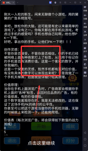2、游戏灵感来源于手机被大数据标记的现象,将抽象的手机价值转化为直观的数值比拼,为玩家提供新颖独特的游戏体验。
