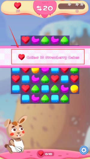 4、消除相同图案,收集16块草莓蛋糕过关。