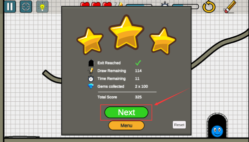 4、点击绿色NEXT按钮,领取325分进入下一关卡。