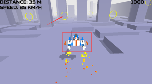 2、操控红框飞船,穿过黄色圆环完成飞行任务。