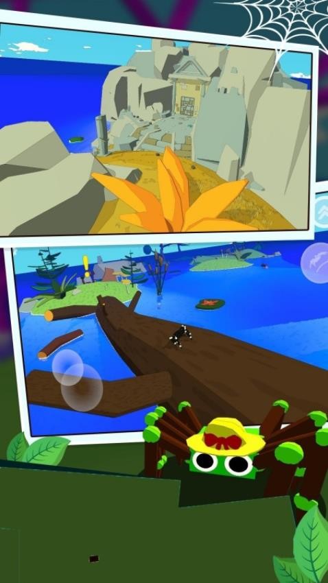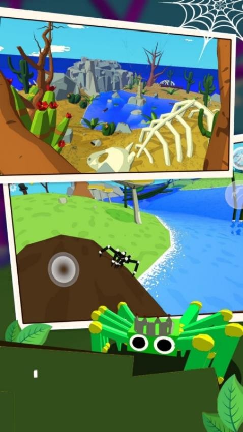 3、个性化成长路线,通过收集材料可强化蜘蛛能力。升级丝线强度、提高攀爬速度或解锁新技能,打造专属蜘蛛角色。