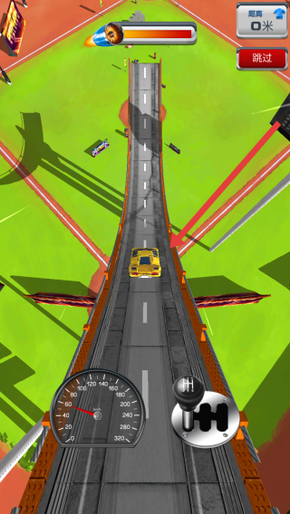 3、在落地后继续驾驶车辆,避开其他的障碍,直至车辆停下,累计总距离,完成本次关卡挑战。