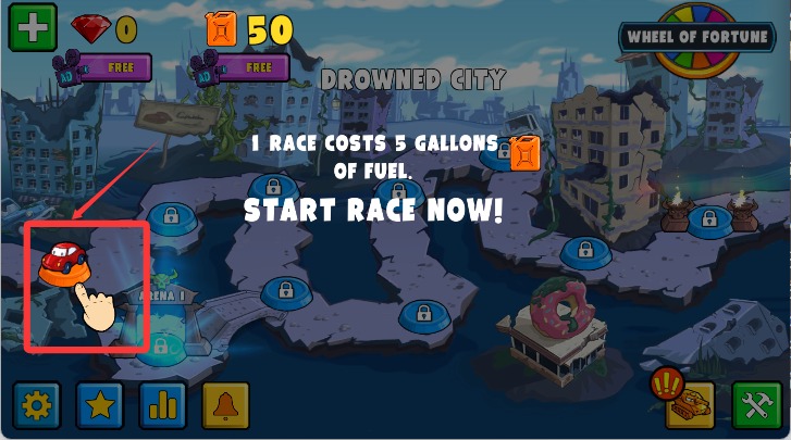 2、开始游戏后根据指引选择关卡消耗汽油开始赛车。