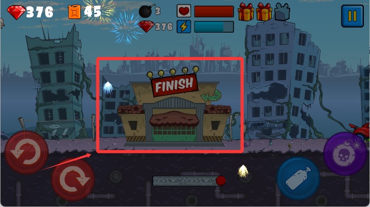3、来到关卡以后汽车会自己前进,我们需要用左侧按键控制汽车的平衡。
