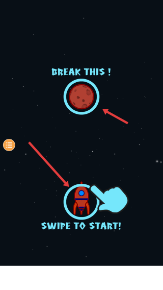 1、滑动火箭,让火箭撞击上方红色星球,摧毁目标。
