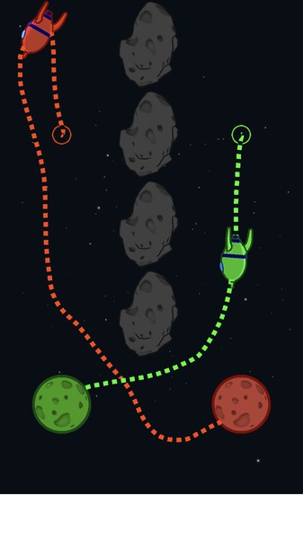 1、同色陨石击打:操控与自身颜色相同的火箭,通过连线导向击打同色陨石,注意不要搞错颜色,避免碰到其他陨石或火箭,确保攻击精准有效。