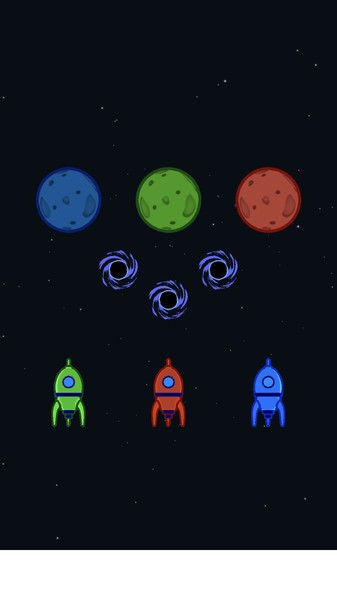 2、避开宇宙阻碍:在宇宙中穿梭时,需避开黑洞和其他阻碍,这些障碍会干扰火箭行进,稍不注意就会导致失败,考验你的反应与操作。