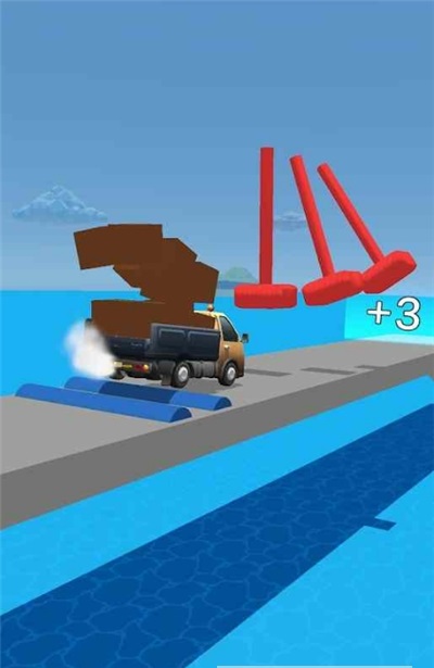 1、进入游戏场景,操控卡车在水上道路行驶,点击屏幕,调整卡车方向,借助道路平衡机制,保持车辆稳定,通过操作,让卡车沿路线前进,感受驾驶挑战的乐趣。