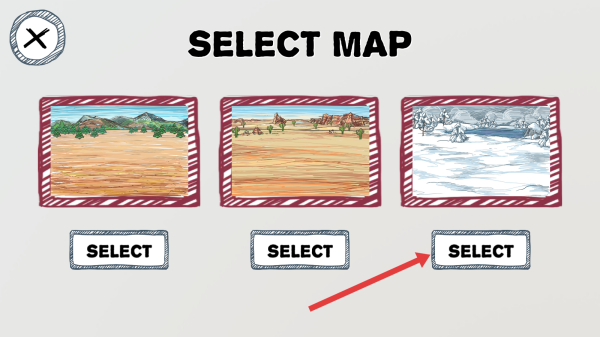 3、进入地图选择界面,点击对应地图的SELECT按钮,选定战场,开启火柴人战斗模拟关卡。