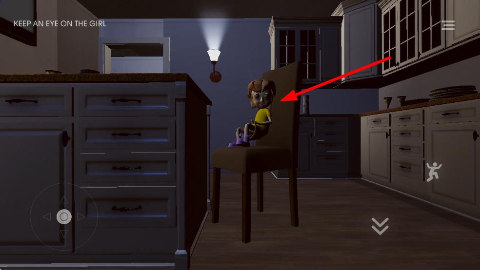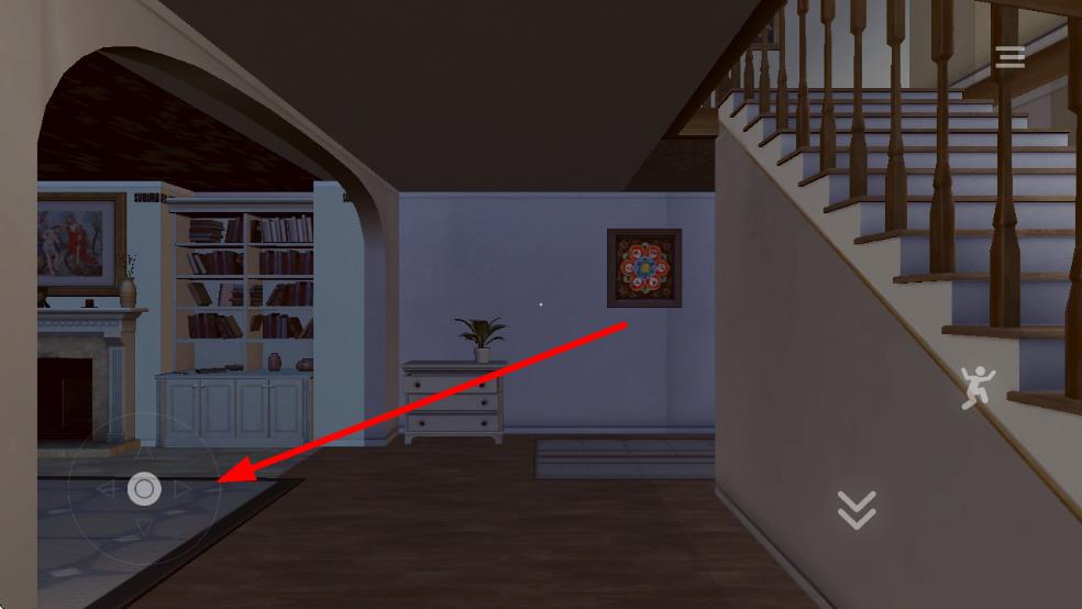 2、通过左侧虚拟摇杆操控角色移动,在昏暗环境中探索房间,留意周围线索。