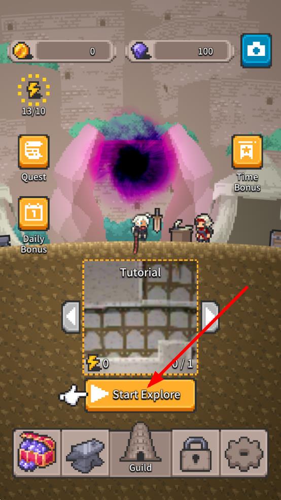 1、在游戏主界面,点击Start Explore按钮,进入Tutorial教程,开启冒险之旅。