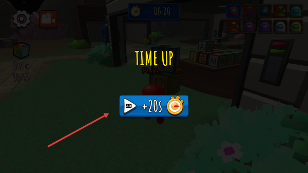 3、若时间耗尽,点击+20S按钮延长时间,继续收集方块,完成关卡挑战获取奖励。