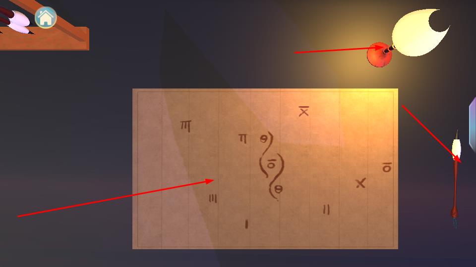 2、进入中式场景后前往桌案区域,点击指定方向位置,触发书写道具如毛笔等交互,准备书写操作。