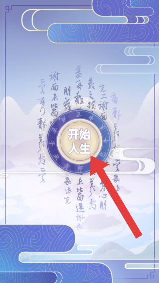 1、点击开始人生按钮,背景有古风文字营造出传统文化氛围,整体是典型的国风人生模拟开局样式,用于引导玩家开启游戏体验。