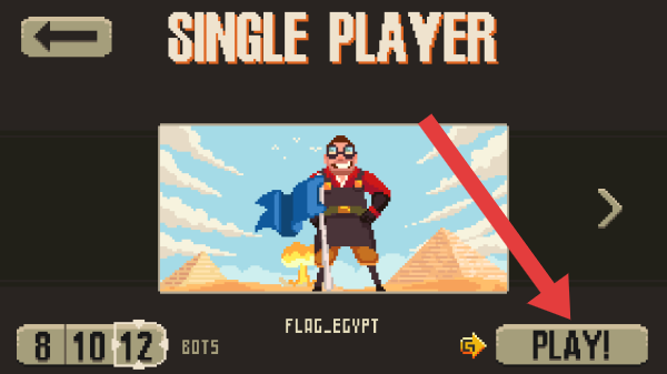 1、图中角色站在金字塔背景前,旗帜标识为埃及FLAG_EGYPT,点击PLAY!按钮可开始游戏。