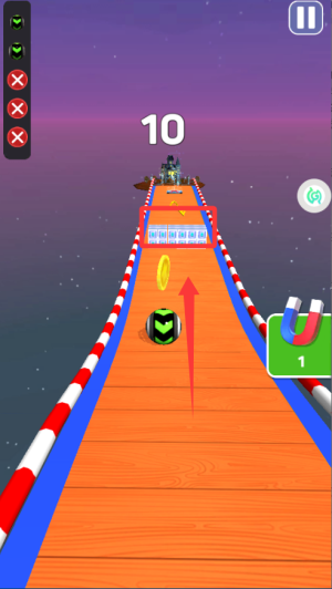 2、动态关卡设计,200+精心设计的立体赛道,包含旋转平台、移动障碍等交互元素。关卡难度曲线平滑,新手也能快速适应高阶挑战。