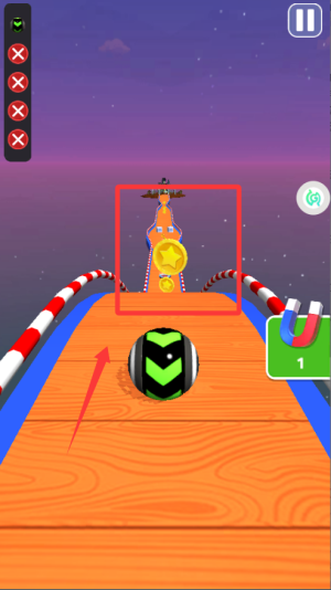 1、开局先熟悉球球的控制方式,根据屏幕下方的箭头指引调整滚动方向,确保沿着正确路线前进。