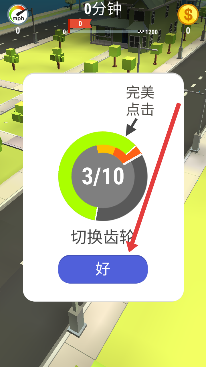 1、在游戏教程中,看到完美点击提示框后,点击好的按钮关闭提示,了解车辆切换齿轮的操作。