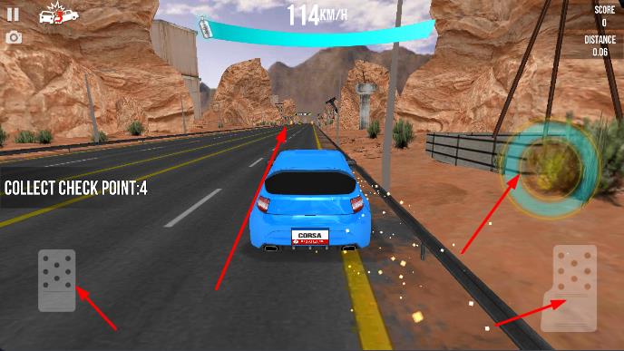 3、成功通过检查点,积累分数,使用道具提升速度、躲避危险,完成赛道挑战,解锁新赛车、关卡。