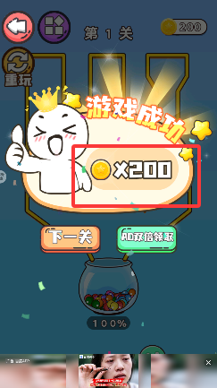 4、过关后,会获得大量金币奖励,点击屏幕即可领取。