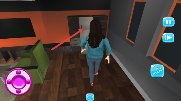 3、场景探索,熟各房间功能,用暂停播放控制节奏,做完饭可探索其他区域,照顾孩子、家务,推进剧情。