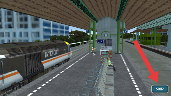2、INTERCITY城际列车标识的火车,点击SKIP跳过方可跳过该画面,以及车站的站台、座椅、人物等元素,呈现出逼真的车站环境。