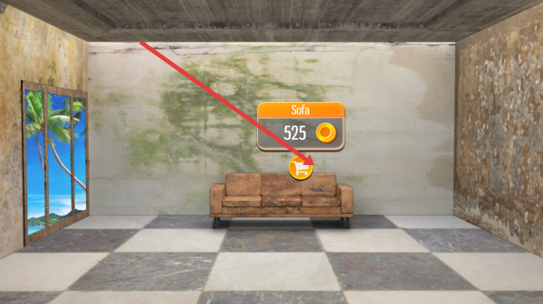 1、进入房间,点沙发看价格525金币,金币够就点购物车买,替换掉旧家具。