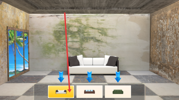 2、购买后弹出样式栏,选喜欢的沙发款式如白色带抱枕款,或者可以选择自己喜欢的样式,自动替换原沙发。