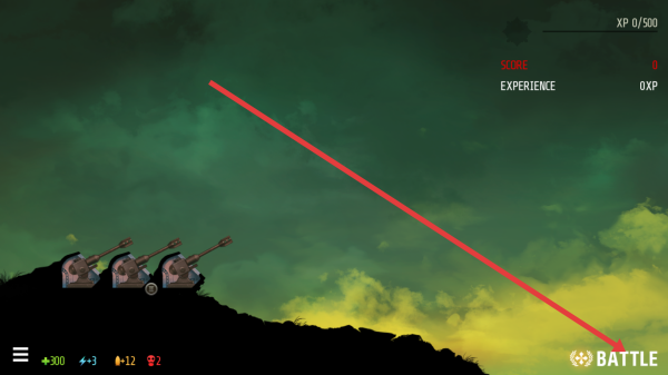 1、页面开启战斗准备,点右下角BATTLE开对战,提前看炮台的属性,确认技能栏道具闪电等可用。