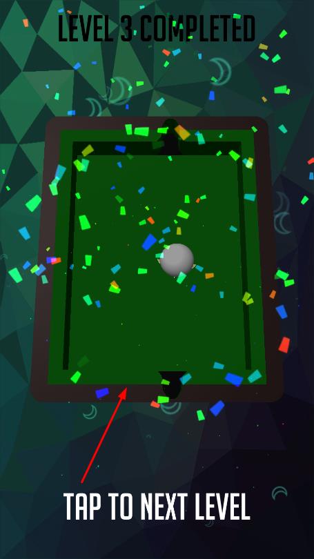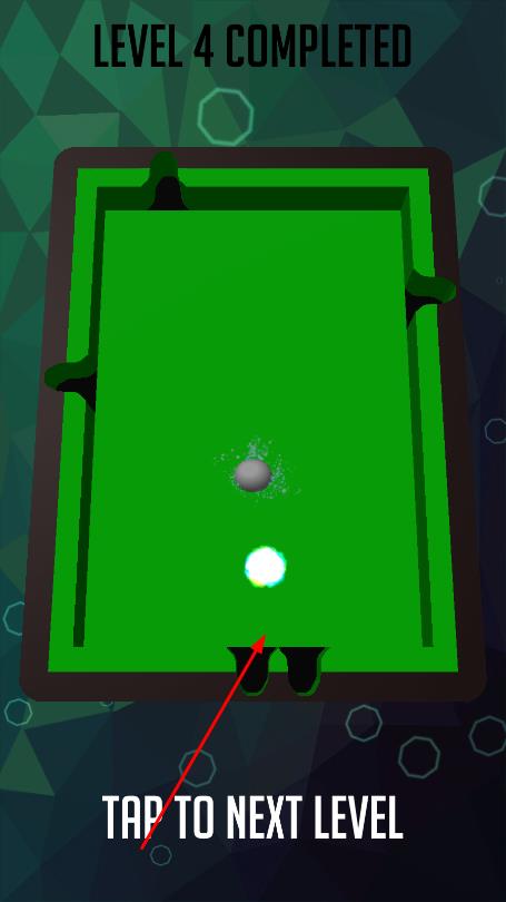3、成功将目标球全部入袋,显示LEVEL4 COMPLETED,点击TAP TO NEXT LEVEL进入下一关,挑战更复杂台球布局。