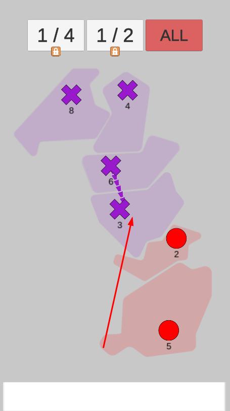 1、点击START BATTLE,进入关卡1地图,地图有不同颜色区域,代表不同势力基地。