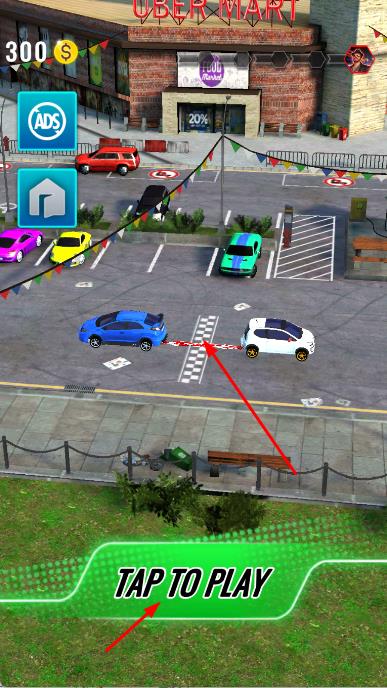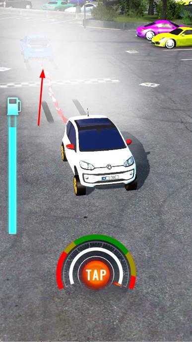 2、点击TAP TO PLAY,操控白色赛车,按TAP按钮控制加速,拉扯红绳,争取将对方拉过中线。