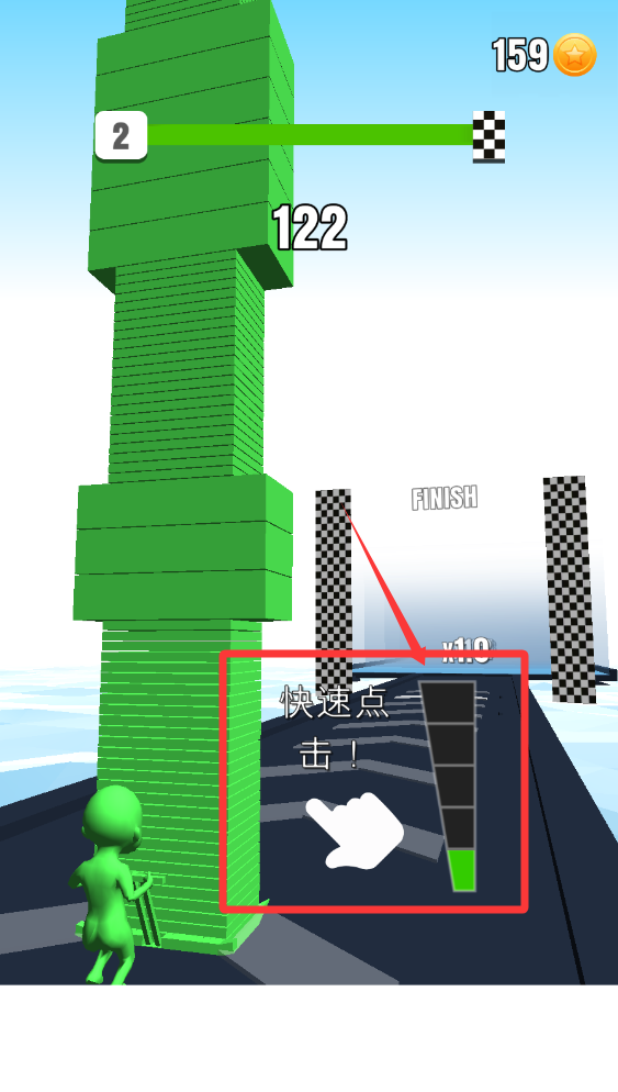 1、基础核心玩法是通过滑动精准控制角色移动路线,收集同色砖块进行稳定堆叠,精准控制移动路线节奏是获得高分的关键要素。