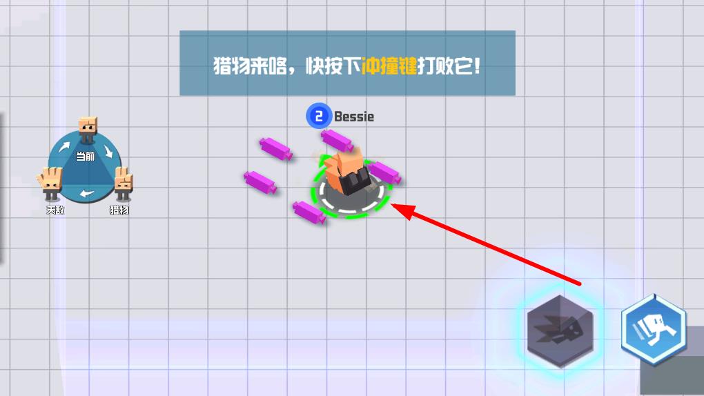 2、技能与道具:战斗中会随机出现体力糖果、加速道具、护盾等,捡取后可增强生存与追击能力,右手技能键可释放冲刺、冲撞等技能,用于快速接近猎物、躲避天敌。