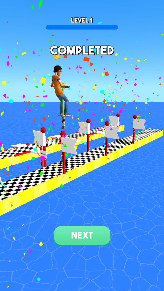 3、刺激闯关体验:角色随时可能因弹簧操控失误跌落,搭配快速的节奏与紧张的音效,营造出强烈的刺激感,让玩家在每一次跳跃中都能感受到心跳加速的乐趣。