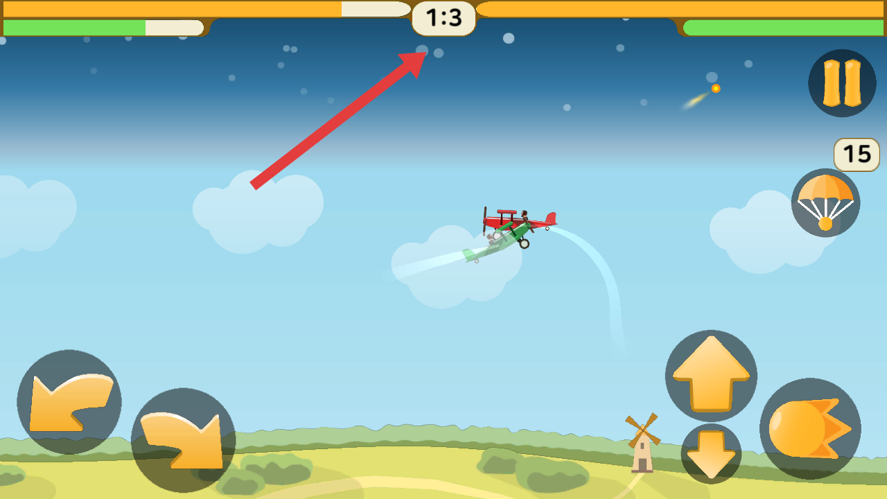 2、在空战中需要留意顶部1比3的对战比分,需要操控飞机灵活躲避敌方攻击,还要小心不要碰到其他障碍物。