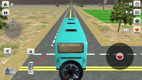 1、驾驶蓝色巴士在道路行驶,通过左侧踏板、按钮控制操作。