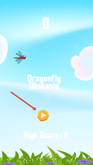 1、主界面点击开始按钮,进入游戏操控蜻蜓,躲避绿色管道障碍。