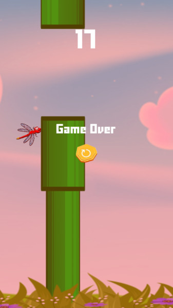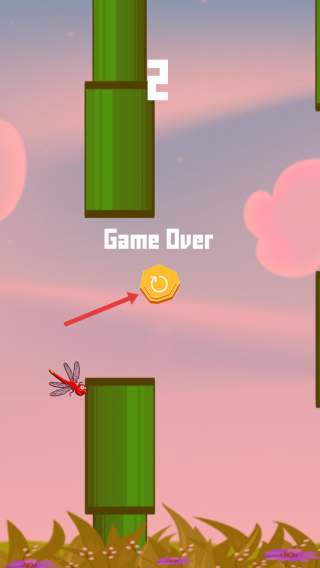 3、若蜻蜓撞到管道则游戏结束,点击重置按钮可重新挑战,争取更高分数。