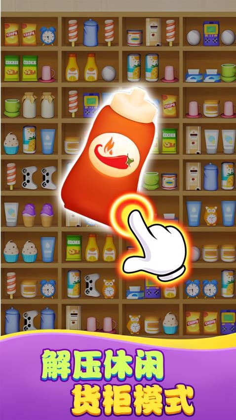 1、核心玩法围绕旋转操作展开,通过点击屏幕旋转货柜,观察物品最佳排列方式,三个或以上相同物品相连即可消除。